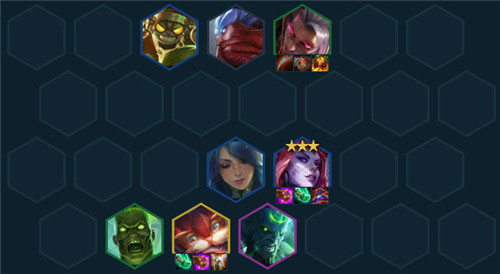 阵容早期往丧尸、龙族方向去凑羁绊。11.9版本更新的S5赛季没有天选以后在前期优先定好阵容的方向对后期是很有帮助的。因为现在大多是大体系阵容,正如版本的主题“光明与黑暗”,要先选择是玩光明的阵营还是黑暗的阵营,亦或者光暗交织。早期的3丧尸、3龙族相对都会比较好凑一些,龙族羁绊早拿到比较好去吃战利品,丧尸可以召唤赛恩比较好打工,所以往任何方向去凑收益都是很高的,所以在11.9赛季初期玩这个体系的阵容也非常多。阵容的成型要义是凑出5龙族,但是有1张关键卡是5费卡的大头,在8人口才更容易搜,如果运气好在7人口能白嫖到那就算天胡了。所以早期尽量打连胜,用连胜的经济迅速的拉升人口,上7卡50金利息存两轮钱就可以直接抢8用概率去赌出5费大头。
