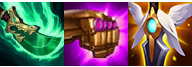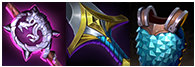 腕豪在这个阵容里的作用主要是顶在前排去拉仇恨、拉伤害,出装可以偏肉一些。龙牙、荆棘背心是坦克英雄的主流选择。第三件装备推荐做出火甲,对腕豪的契合程度高,坦度强。