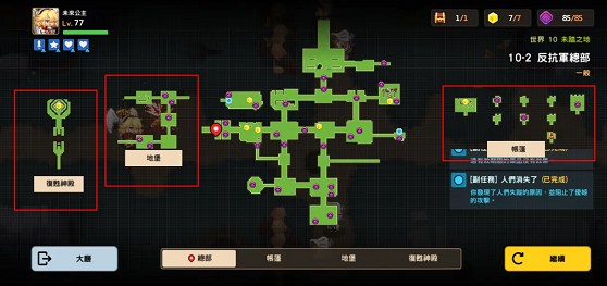 坎公骑冠剑世界10-2全收集攻略图【反抗军总部】