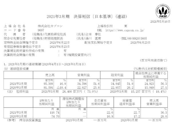 街机cn 来源:厂商 发表于:2021-05-10今日,卡普空发布了2021年度财报(2020年4月1日~2021年3月31日)。卡普空于2021年度总销售收入953.08亿日元,较去年度815.91亿日元小幅增长16.8%,营业利润为345.96亿日元,同比增长幅度较大为51.6%。《怪物猎人:崛起》等游戏对销售额增长做出了杰出贡献。
