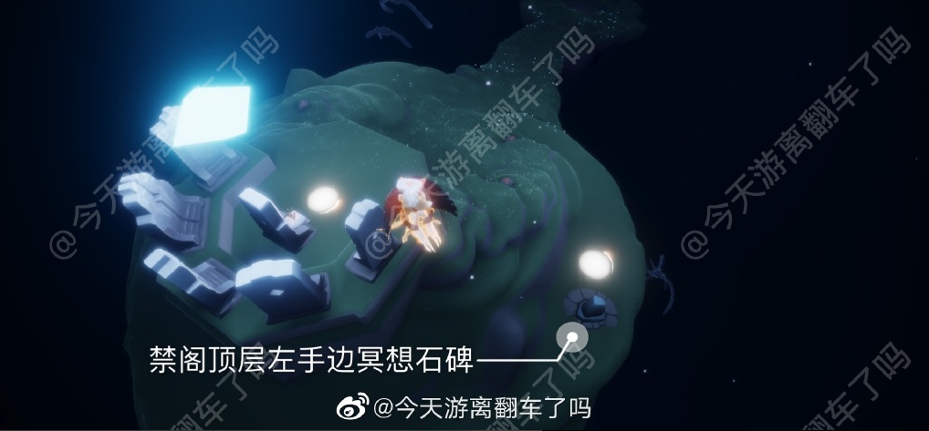 在禁阁顶层左手边冥想石碑处冥想,具体位置如下图所示。