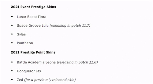 至臻皮肤:塞拉斯(代币兑换)、劫(100至臻点)。