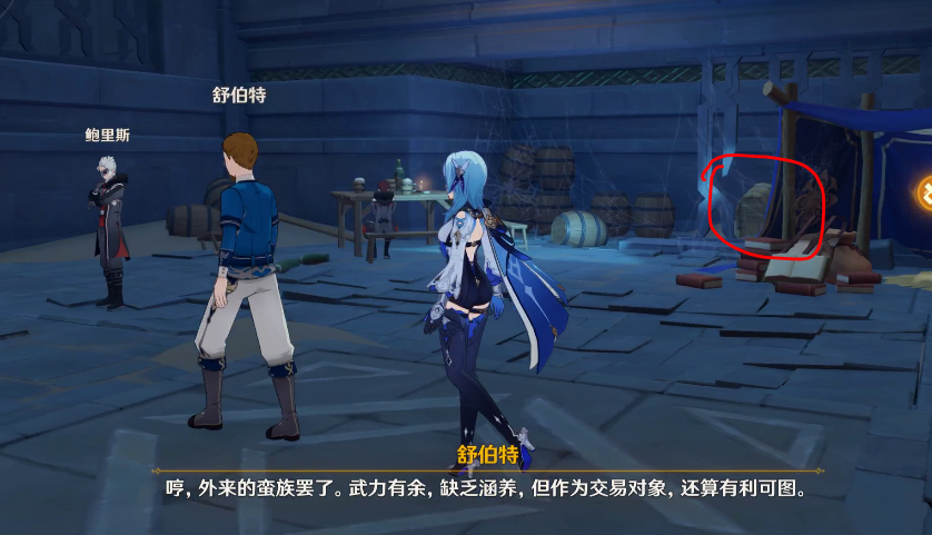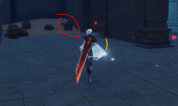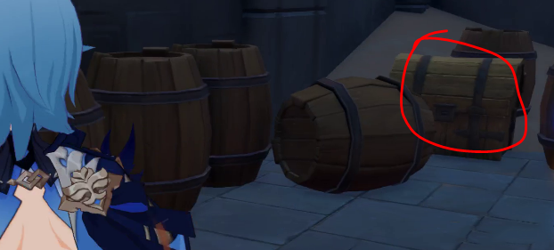 第一个宝箱,位于舒伯特带我们走进的愚人众大厅,开始慢走的时候注意右手边的墙角。
