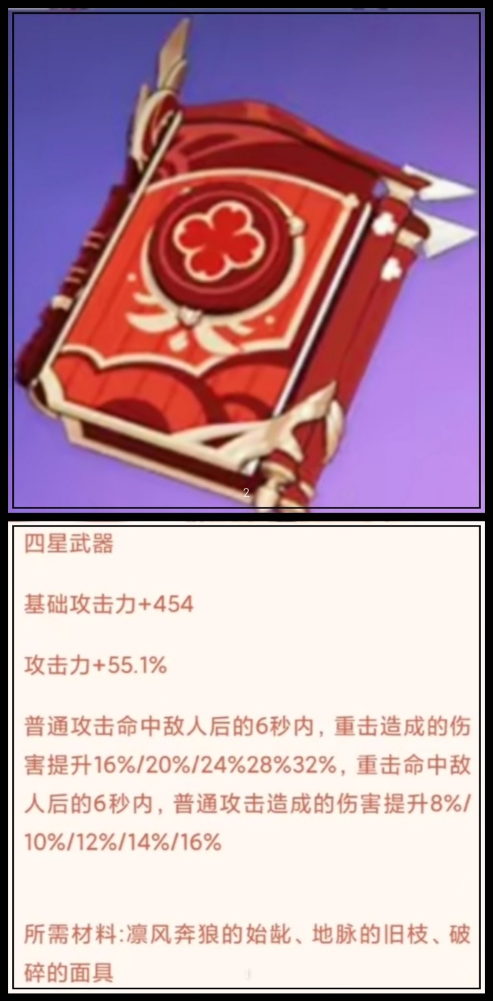 四星武器目前可莉专武最优先推荐 (五星武器白字高于四星)但是精炼五的可莉专武不知道伤害,词条超级适合可莉,所以这里先排除可莉专武。 其次是匣里日月 流浪乐章(副c)
