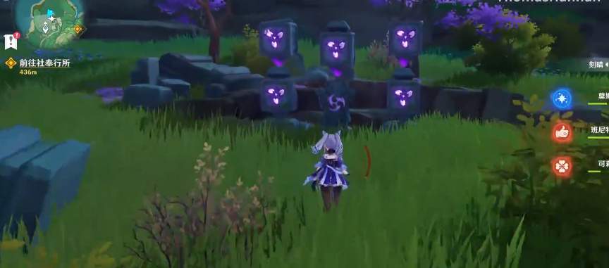 第四个雷柱就是这个樱花石块机关,触发方法:原神荒海樱花石块机关解密攻略