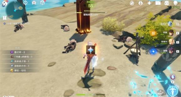 4、最后一路向里,可以看到一个仙灵,跟着它可以出去,然后你会看到一地的丘丘人被武士怪宰了,这是不是原神里最残忍的画面了?