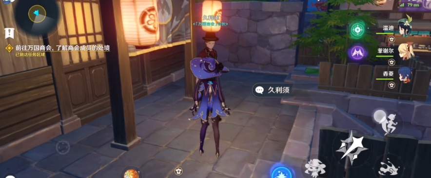 2、在托马所在位置下方楼梯的方向,找到万国商会的会长「久利须」对话,了解商会成员的处境,得知当前商品受到垄断。