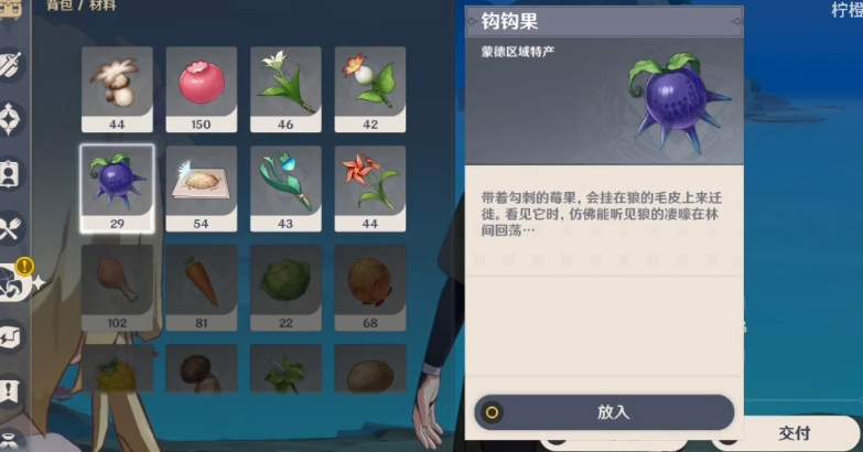 5、在对话时候选择暗示蒙德地区的选项,然后提交蒙德地区的任意材料特产。