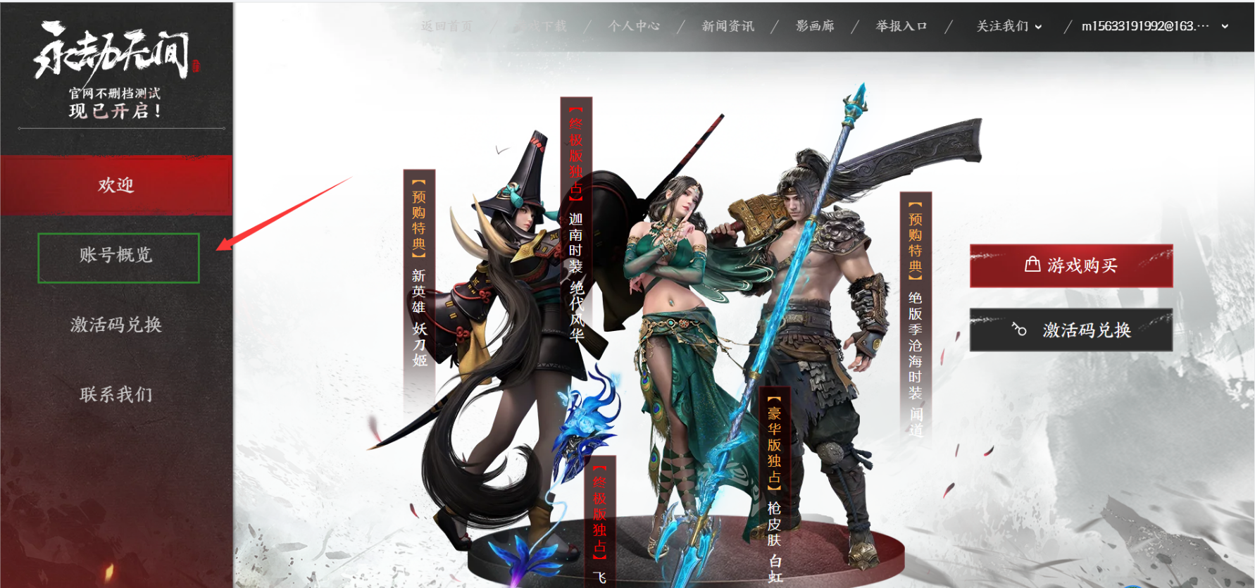 A:获得激活码的玩家,可以在官网-个人中心-激活码兑换,使用激活码来激活游戏资格和对应档位奖励。