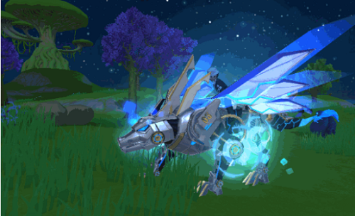 4、待进化至迅狼号·星翼背上两侧增加星翼组件获得飞行功能可在空中平缓滑行前进双眸投射出迅狼号的实时数据图,以检测状态腿部的护甲组件升级为浮游式增加迅狼号的推动力。