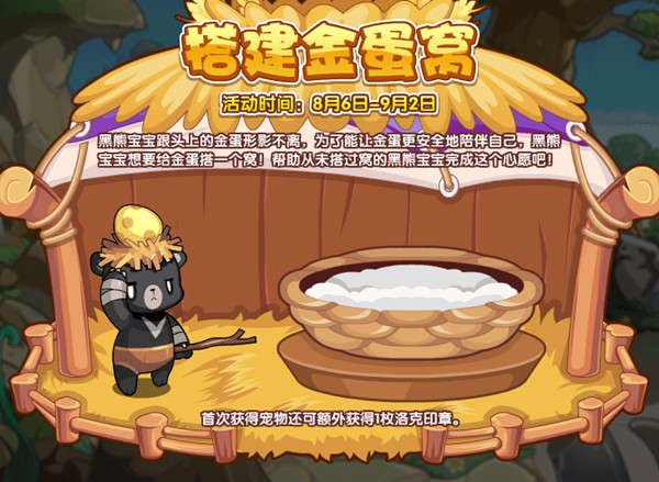 黑熊宝宝跟头上的金蛋形影不离,为了能让金蛋更安全地陪伴自己,黑熊宝宝想要给金蛋搭一个窝!帮助从未搭过窝的黑熊宝宝完成这个心愿吧!