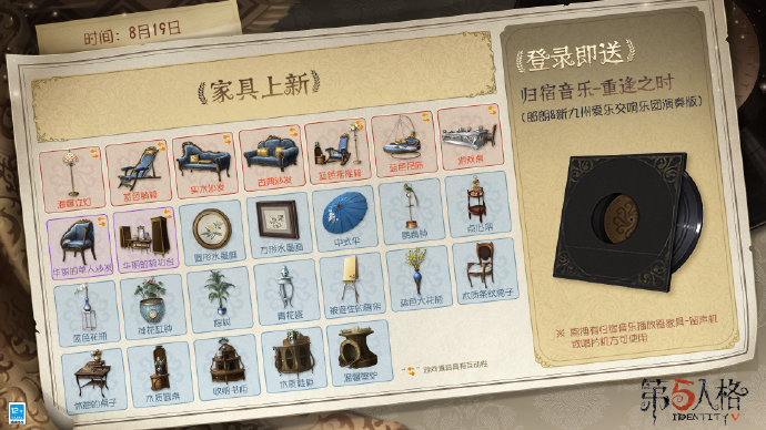 限时活动同步开启,侦探们登录即可领取【归宿音乐-重逢之时】(世界顶级钢琴大师郎朗,编曲陈一磊老师及新九州爱乐交响乐团合作版),完成其他任务还可获得独特家具等更多奖励。
