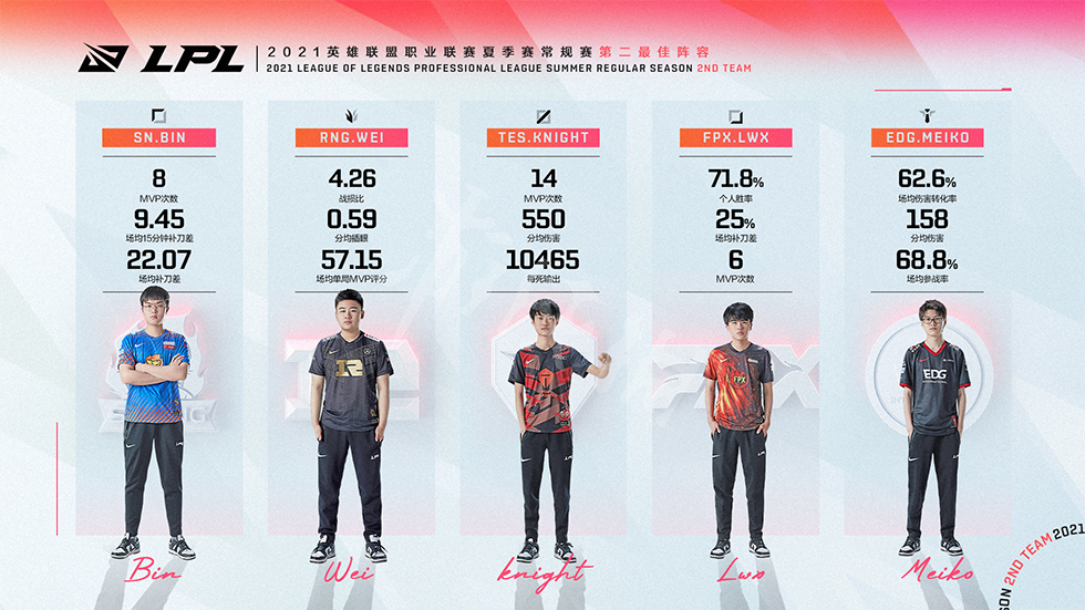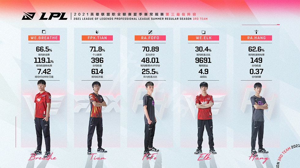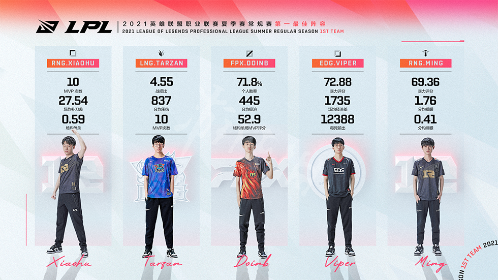 近期官方正式公布了2021年夏季常规赛的最佳阵容,分别如下。