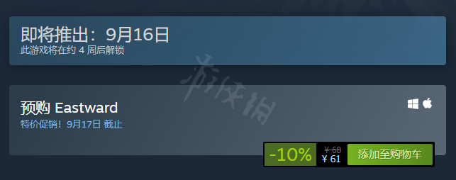我们在今天开启预售,预售期间购买的玩家将会享受到10%的折扣,国区原68,现61(仅限预售期)。