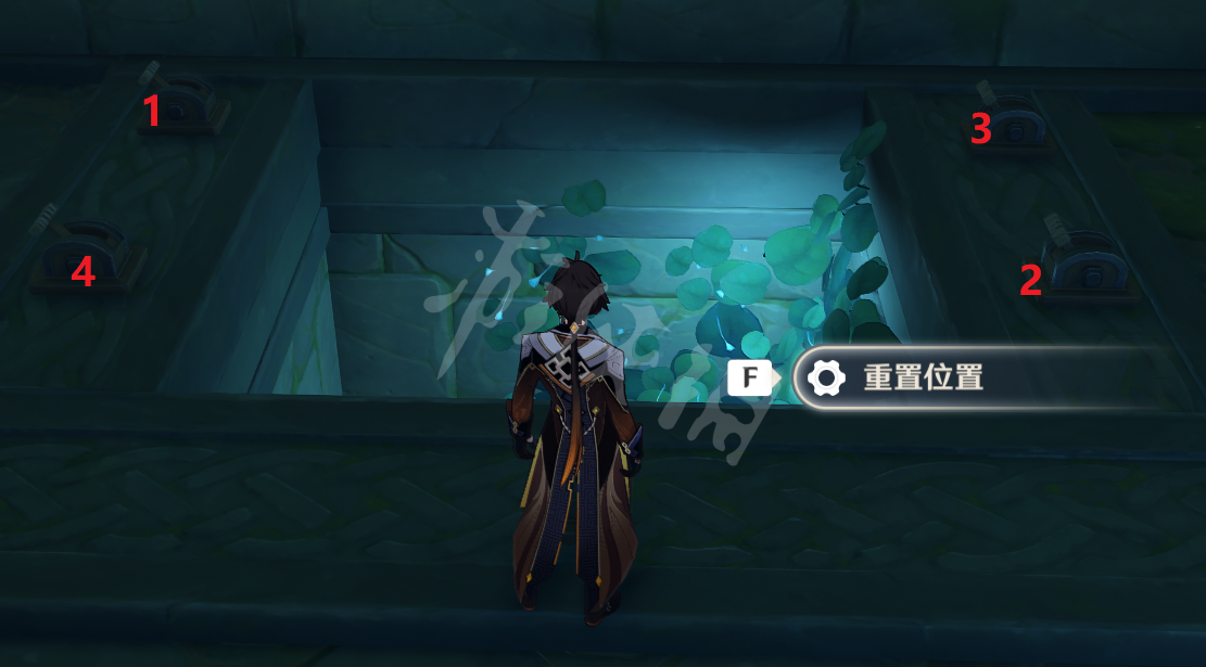 值得注意的是蛇神之首处的墓碑,需要解谜才可以下去,拉杆玩法如下图。