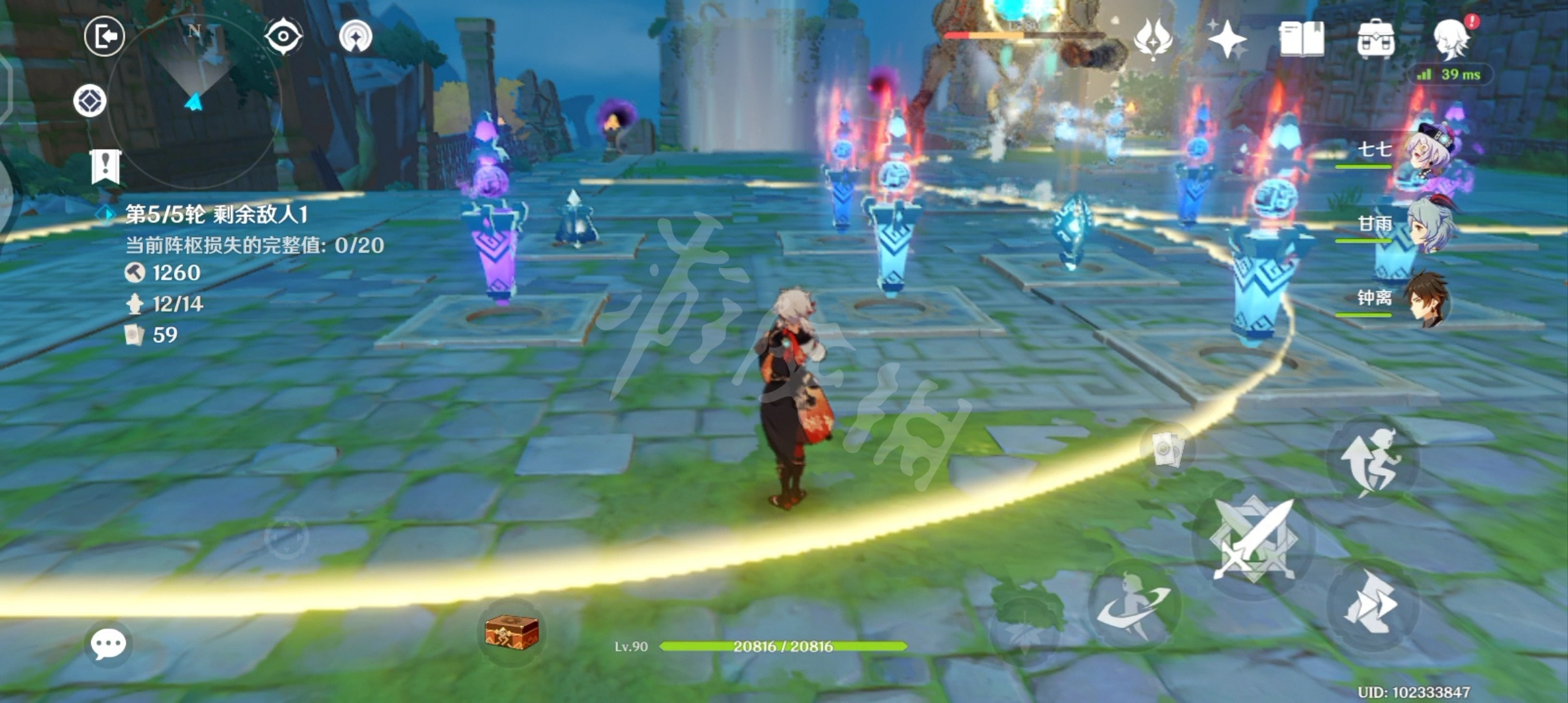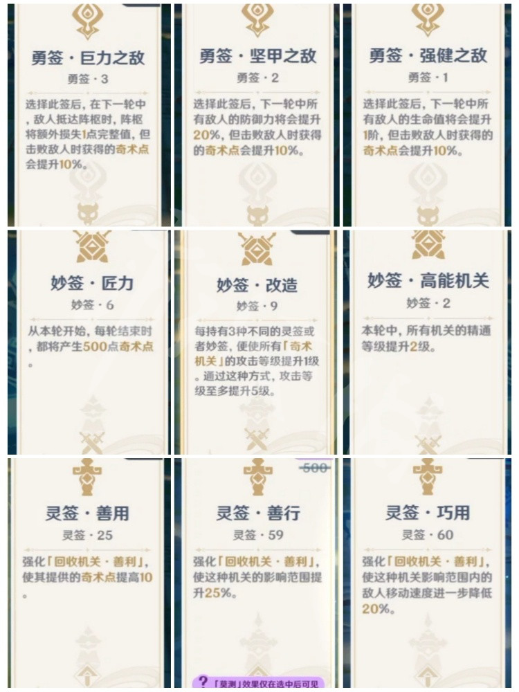 第三波开始全部抽取属性增益类灵签,建议中心摆放玄名,增益附近所有棋子,增益玄名的灵签也尽量抽取。