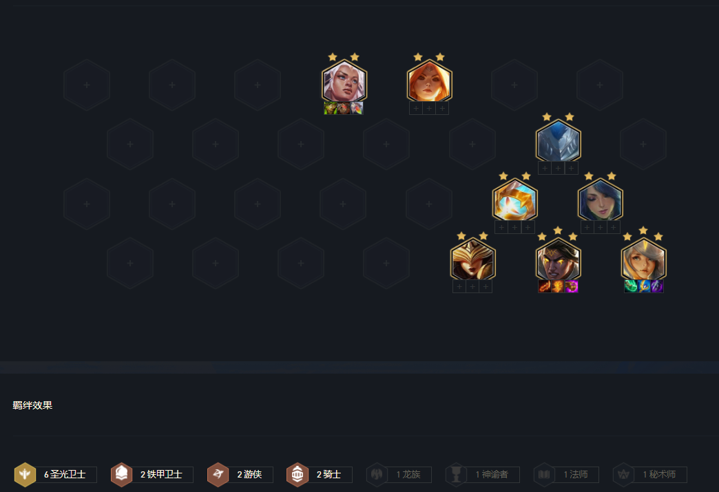 这套阵容现在玩的人非常少,但强度绝对有保证,特别是在有圣光转或骑士、铁甲转的时候阵容强度更是能在提升一个档次。