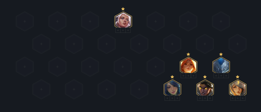 3阶段:通常在3-2升级6人口,这时候看自身棋子,如果韦鲁斯多4-5只,装备差不多就可选择这套阵容。