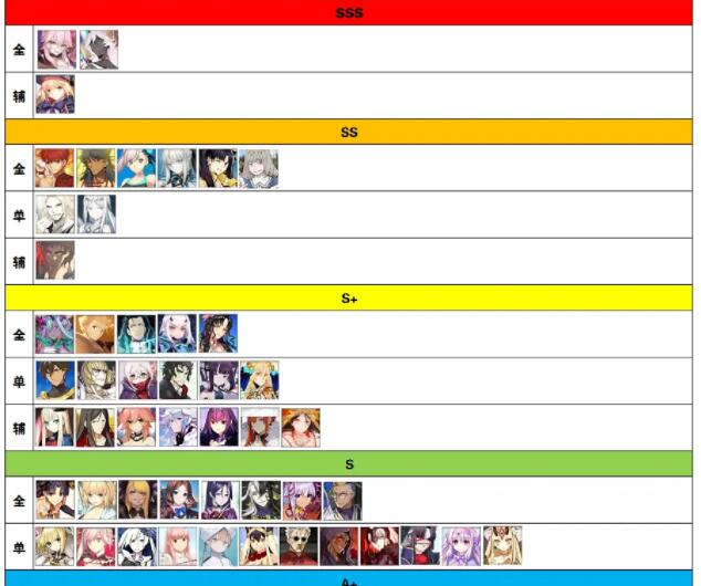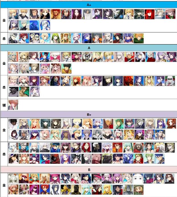 评价:比较重视输出,大概就是最短能打几回合就打几回合的编排,比较适合大佬的排行榜,不过一般大佬也不怎么需要看排行榜来考虑如何打高难。就当前的环境而言,这个榜也算是中肯吧,优秀的爆破输出大概也就是前头的这几个,SS级算是大多数爆破场合都能用的,S+到A这个阶段的基本都是根据副本情况能够找到适合的应对从者。