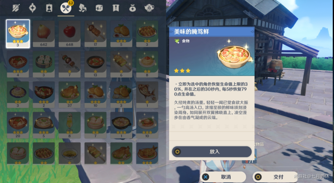 尽量不要选三彩团子、稠汁蔬菜炖肉、蒙德烤鱼这三个选项(因为npc要璃月菜)。重点是要给npc失败的菜品:「奇怪的...」什么菜,例如,「奇怪的三彩团子」。