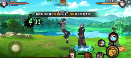 然后再接着说一下纲手的关卡,这个关卡前半段是对战静音以及其他辅助的小兵。静音中间会有一个战力回血的状态,你需要站在封的位置一段时间才能够接触对方回血的效果,然后再进行攻击。