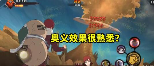 我爱罗的关卡前半段的小BOSS是忍战勘九郎,但因为我选择的是普通难度直接佩恩天道两个技能就带走了,这里主要说一下我爱罗的打法。我爱罗第一个阶段是普通效果,第二个阶段会躲到砂壳中,这个时候你必须要攻击自由移动的砂之眼。这个砂之眼无法被抓取,只能选择一个可以打出高伤害的忍者,不然的话会很难打。第三个阶段就是我爱罗释放了多个砂柱,你不需要在规定的时间内击破这几个柱子,不然的话就会被我爱罗的奥义终结掉。我第一次看到这个奥义效果的时候感觉还挺好看的,但有玩家说是直接照搬了OL里的奥义效果,所以有些人觉得很熟悉。