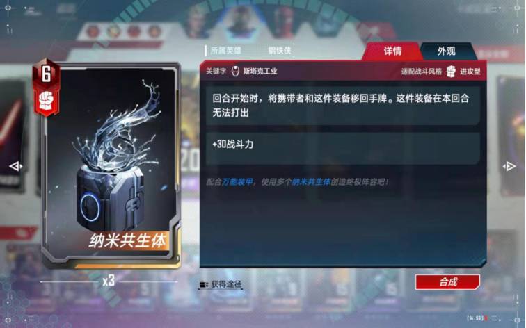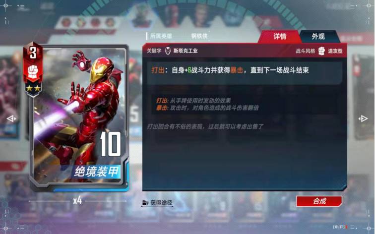 这张卡佩戴给隐匿装甲或者究极钢铁侠后非常给力,可以重复打出给万能增加伤害。