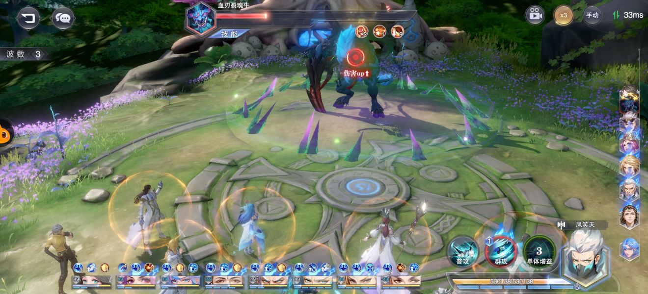 之后戴沐白或泰坦嘲讽boss群嘲小怪,水冰儿减速,风笑天或者其他c位快速清理小怪