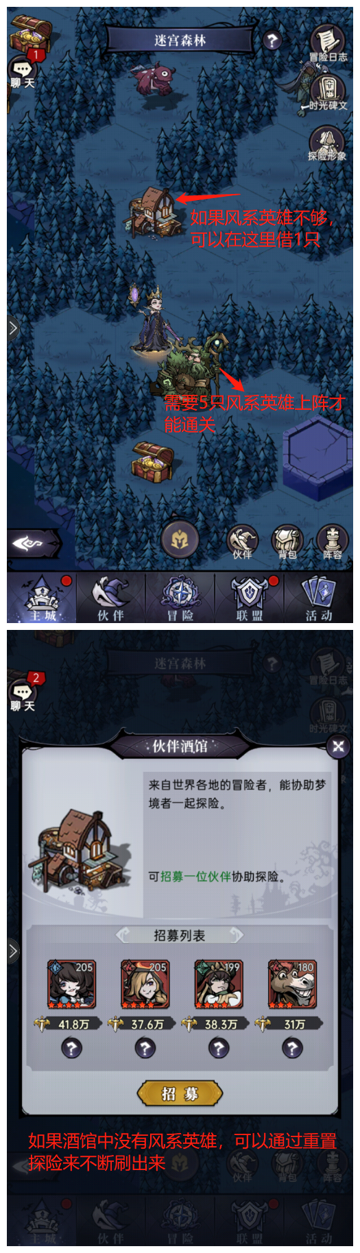(若酒馆中没有合适的风系伙伴,可以通过重置探险来刷新酒馆伙伴)