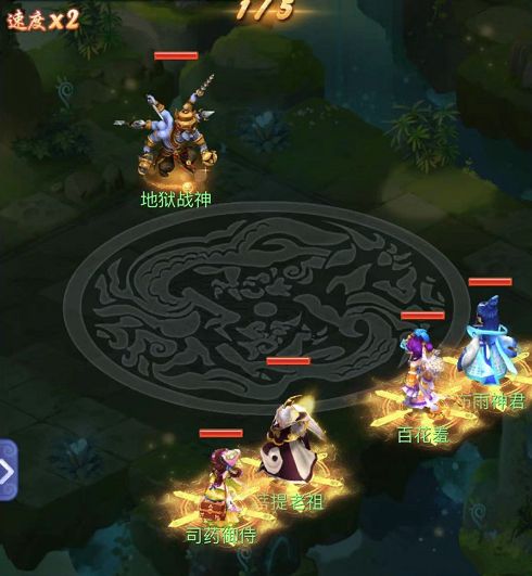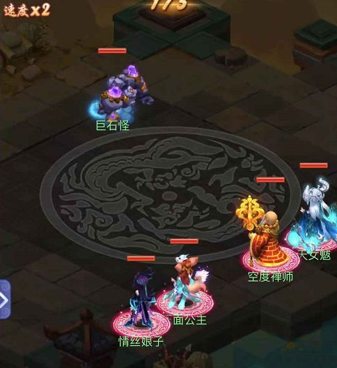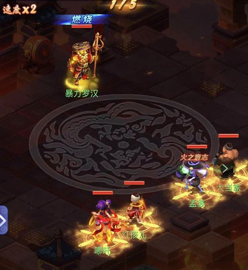 思路是利用第一回合孟婆打到金属性怪挂燃烧,牛魔第一回打死小怪触发燃烧,这样可以3连爆炸,一回合清场,且这样的阵容,后续输出也不乏力!