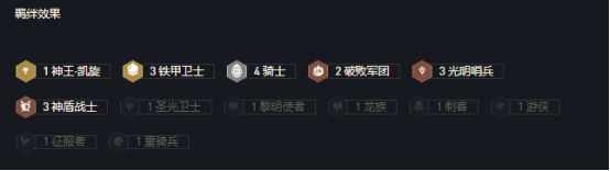 3光明哨兵:战斗开始时,血量最高的光明哨兵获得一个800的护盾,100%攻速,持续3秒。当护盾被破坏或消失时,护盾会传递给附近一名生命值百分比最低的友军