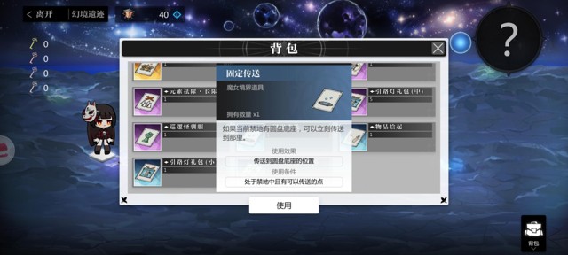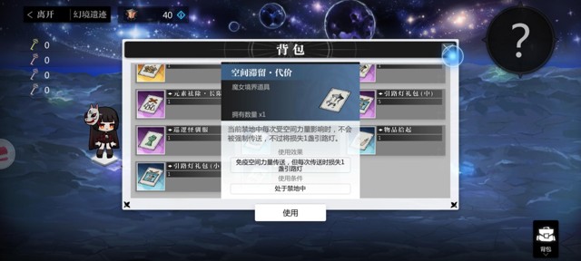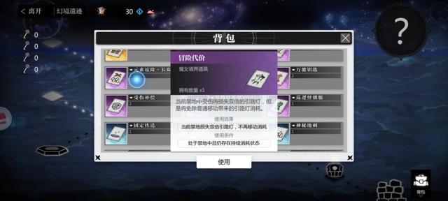 一星,每次进去都给,消耗8灯退出当前禁地,没啥用,通关自动消失,不能换石珀