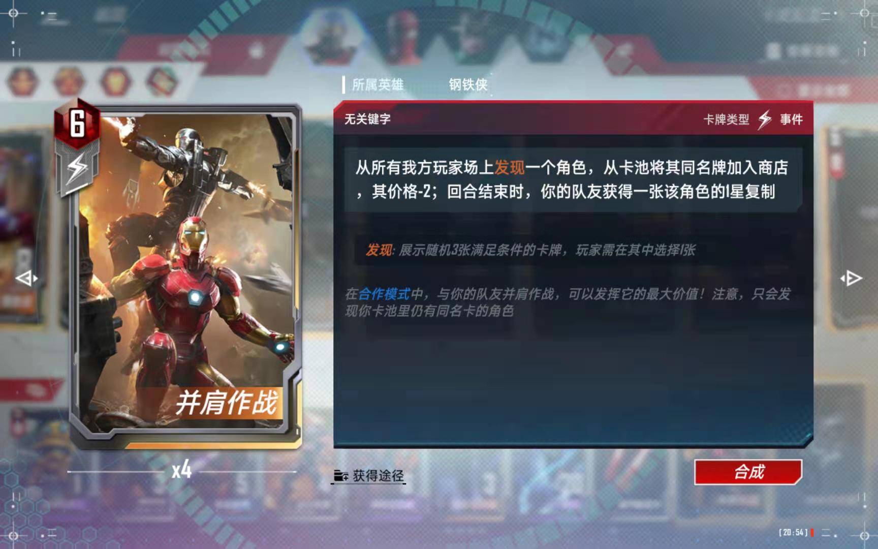 并肩越多越好,每天合作打一打,攒下尘,基本上每个月可以稳定获得一张并肩作战,大部分用钢铁侠辅助的卡组里,这张卡都是必须的检索牌。