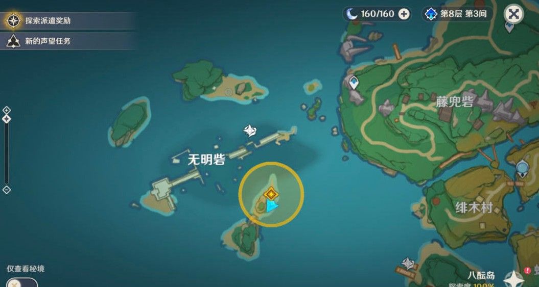 1、首先前往下图小地图所示的位置,这个机关位于一个浮空的小岛上,岛上还有向上的风场。在岛屿的旁边可以直接落下触发第一个机关。