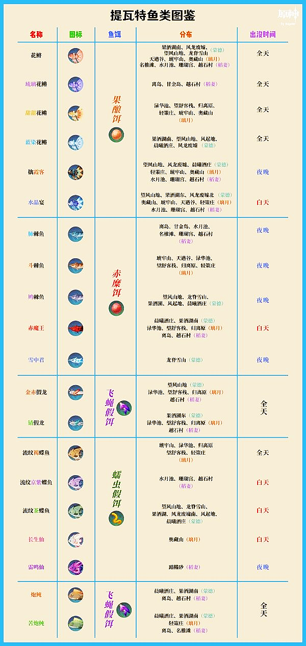 《原神》2.1版本全鱼类分布地点出没时间汇总介绍