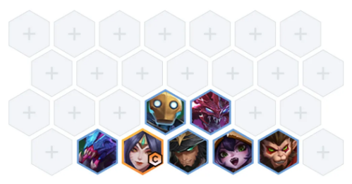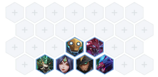 站位如图,可以中间沉底站位,也可以左侧贴墙站位,一个是可以防多数法师阵容,一个可以防刺客,看个人习惯来选择。这边需要注意卡牌的回蓝只有半径一格的范围,一定要把需要回蓝的单位,贴着卡牌放。