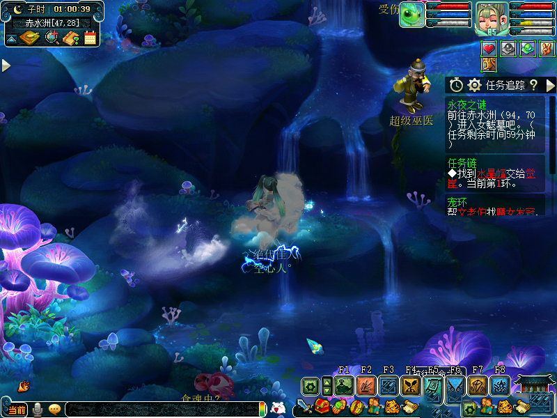 跟夜游神对话完自动传送到赤水洲,然后找食魂虫(就在附近,自动寻路就可以了)