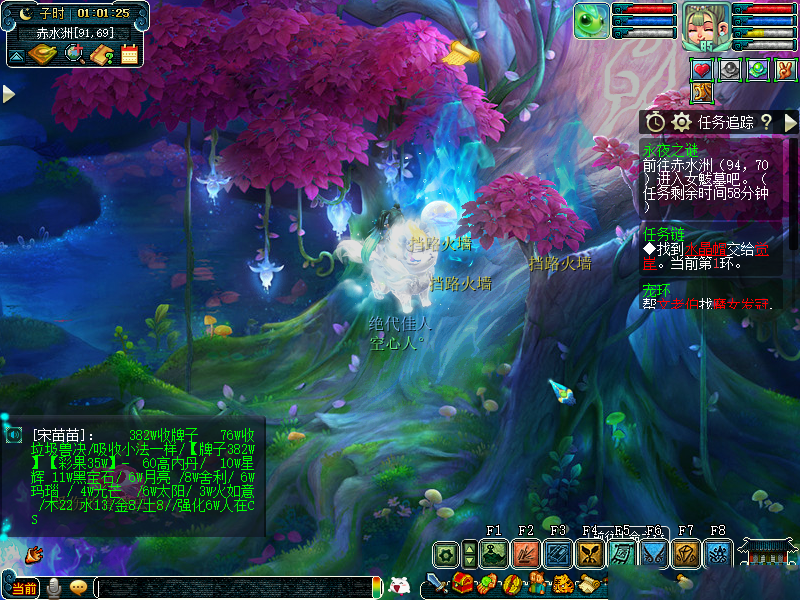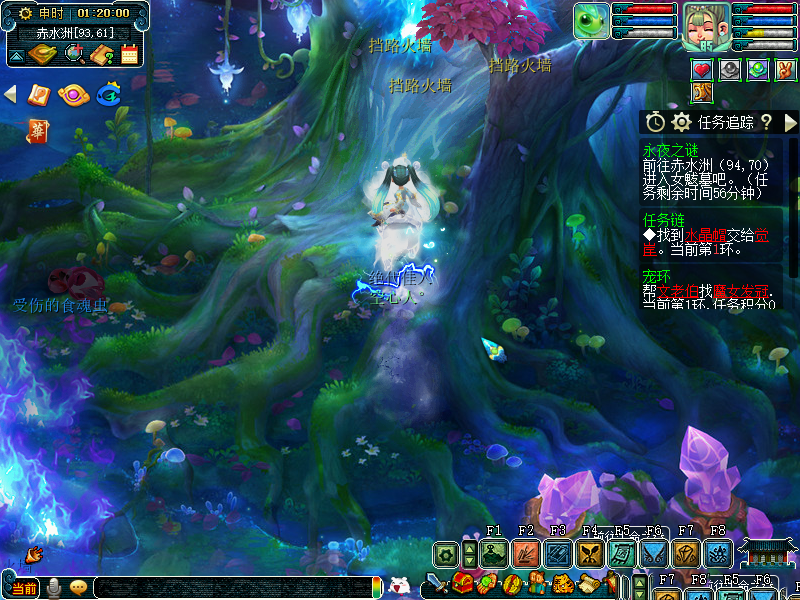 整合到仁慈就完成了,打开地图寻路到赤水洲94,70点挡路火墙进入女魃墓。
