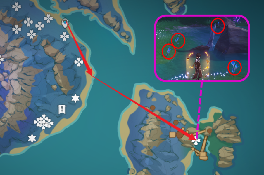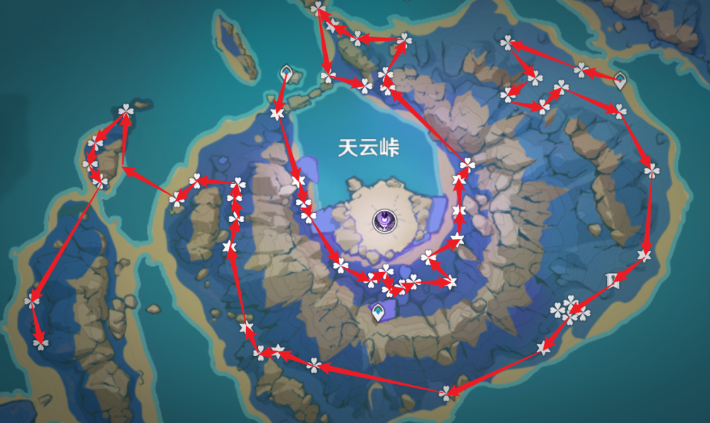 此点位距离较远,不推荐前往。但由于1、 2 线路加上雷电将军试用奖励给的3枚天云草实恰好165枚,差三枚才足够雷电将军突破90级,若急于突破,且不方便联机,可选择前往,否则可考虑等待两天。