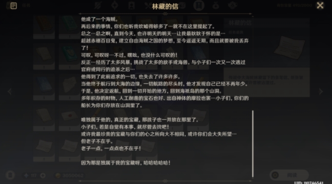 为了报复盗宝团抢走了天舞的宝藏!天舞冲进去把他们狠狠地教训了一顿!却在面向营地的左手边发现了一张信,正巧就是“林藏的信”!