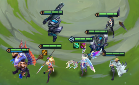 人口来到五人,记得石头人要买一手经验,直接顶到五人口。这个时间点如果刷到核心阵容的棋子最好,如果没有刷到也不要过多刷新,浪费经济。五人口最理想的阵容是双核心——豹女和索拉卡,搭配洛、刀妹、泰坦。这个组合的回复和控制都很充足,也有较高的伤害能力。