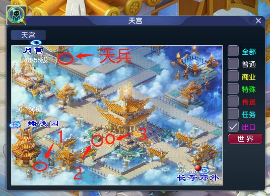 天兵对话结束之后获得线索,然后去凌霄宝殿门口有个天将造型的传送,点击传送进去,找李靖对话,提示天兵已经全部派出去了,然后去王母那里,地上有个新的天条,显示禁止早恋,这时候线索收集完毕,李靖的线索和拦路天兵线索整合,发钗和情书线索整合,最后剩下两个线索整合一下就结束了,找到月宫门口天兵打架,天兵无限神佑,不用攻击,防御三回合自动召唤NPC给他一大嘴巴子结束,测试号155级 70W经验 3.3W钱