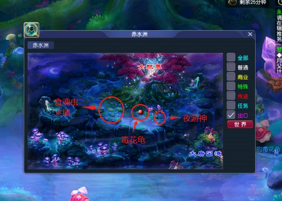 今天开局还是老样子,找夜游神对话入场,一段动画过后到了赤水洲,发现一只半死不活的食魂虫,然后跟着任务走,发现女魃墓入口被火墙挡住了,周围都是半死不活的毒花龟和食魂虫,四周充满了怨气,接着就是收集线索流程,线索如图,一共四个,其中夜游神要给他一大嘴巴子打醒(没难度 摸一下就飞)