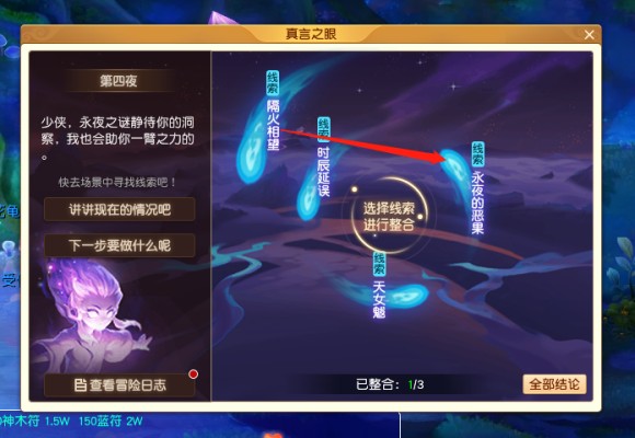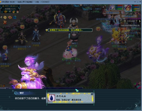 接下来是永夜任务,每天开一个新任务,第一天的不用说,全程对话,看完动画片结束,测试号155J 给了70W经验 3.3W银子