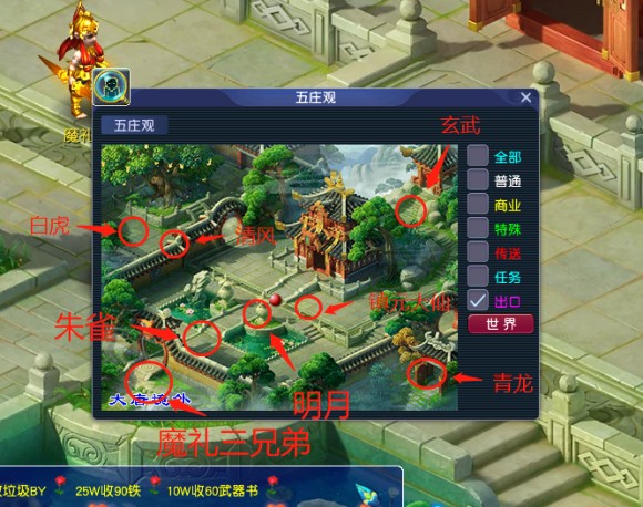以下是线索图,四象守护阵不需要全点,点一个就可以获得线索了,清风 明月 镇元 魔礼三兄弟各点一下结束,路线自己挑