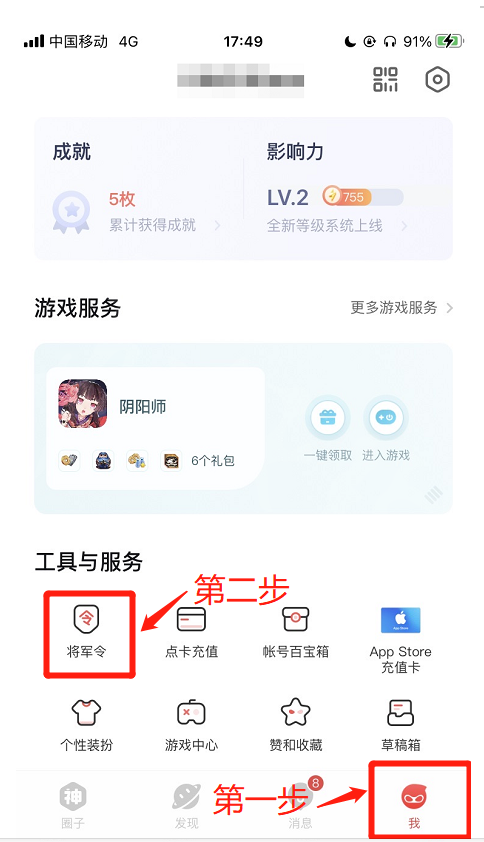 2.打开大神,在底部菜单栏“我”中找到将军令,如下图: