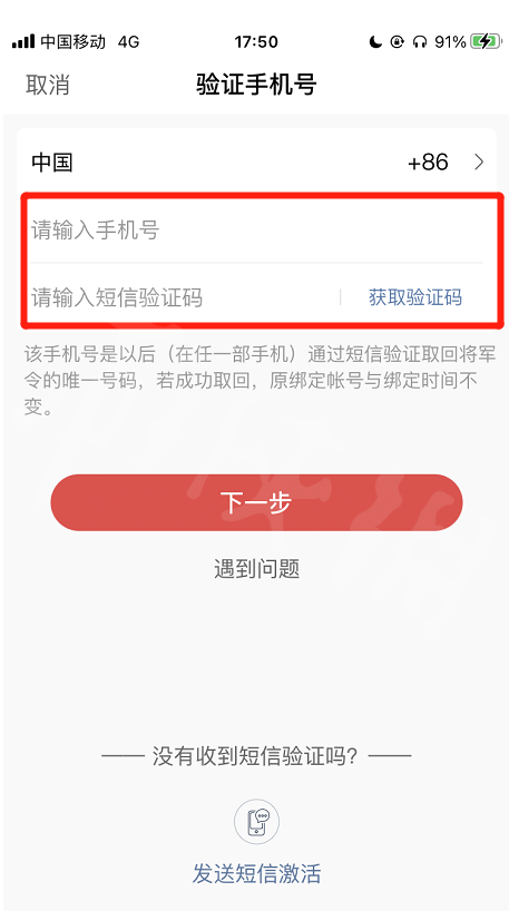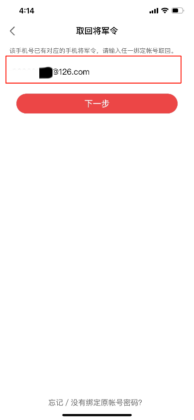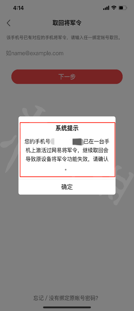点击确定后输入对应的游戏帐号,再点击下一步即可在新设备上激活将军令。如下图: