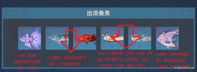 4种鱼饵将鱼分为四类,分别对应1234四种鱼饵,让你钓鱼不需要翻看攻略即可秒懂用什么鱼饵