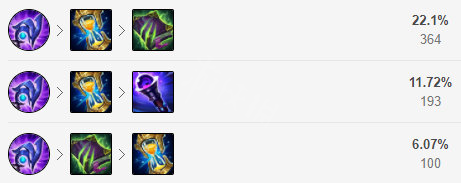 卢登提供法强法穿以及法力值等属性收益,装备被动是配合技能触发,提供溅射伤害以及小移速加持。沙漏提供法强和护甲并给予我们金身保护,莫雷洛秘典提供法穿以及生命值加成,且给予我们技能后的重伤效果加持。
