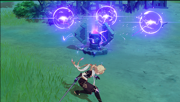 1、挑战开启后,旅行者需要使用雷元素属性的攻击激活「普尔希娜光钉」,并持续为其供能。